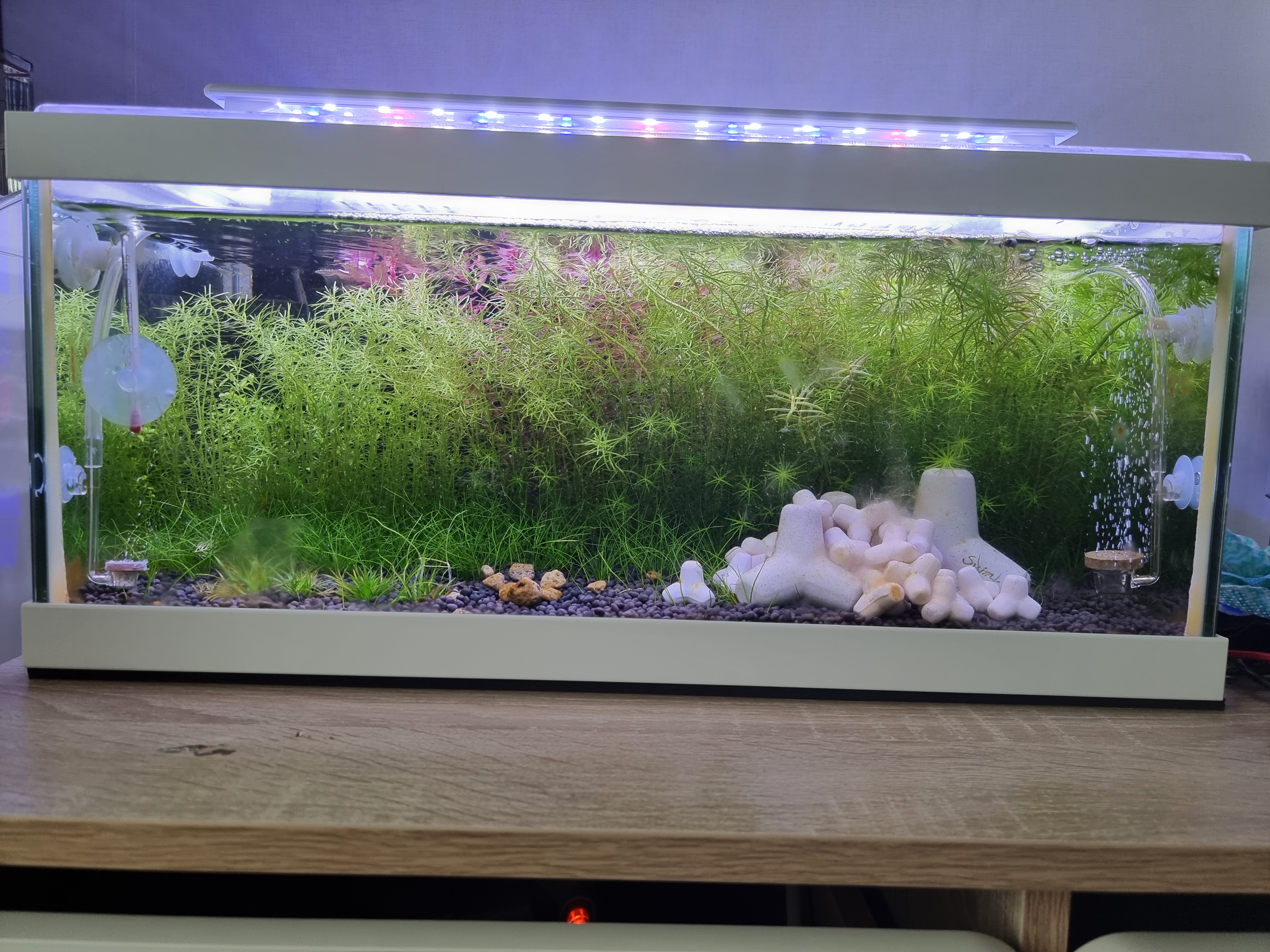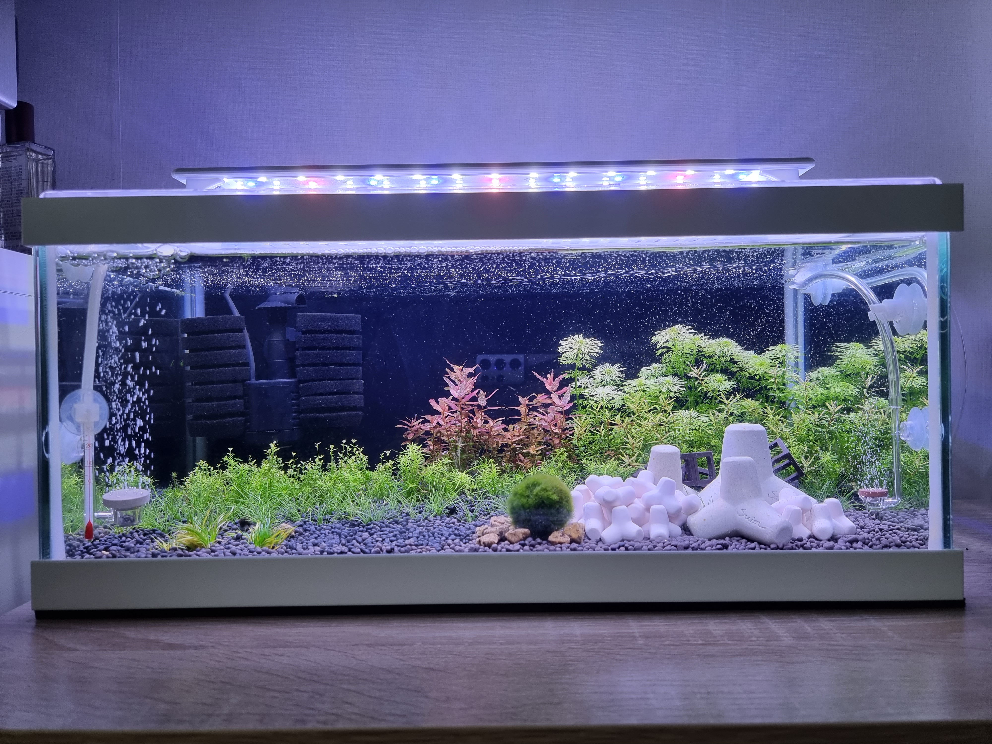 단점은 어항온도가 1도정도 올라간다는거 (진짜로 올라감 ㅜㅜ), 물흐름이 좋지 않아 유막이 생긴다는것