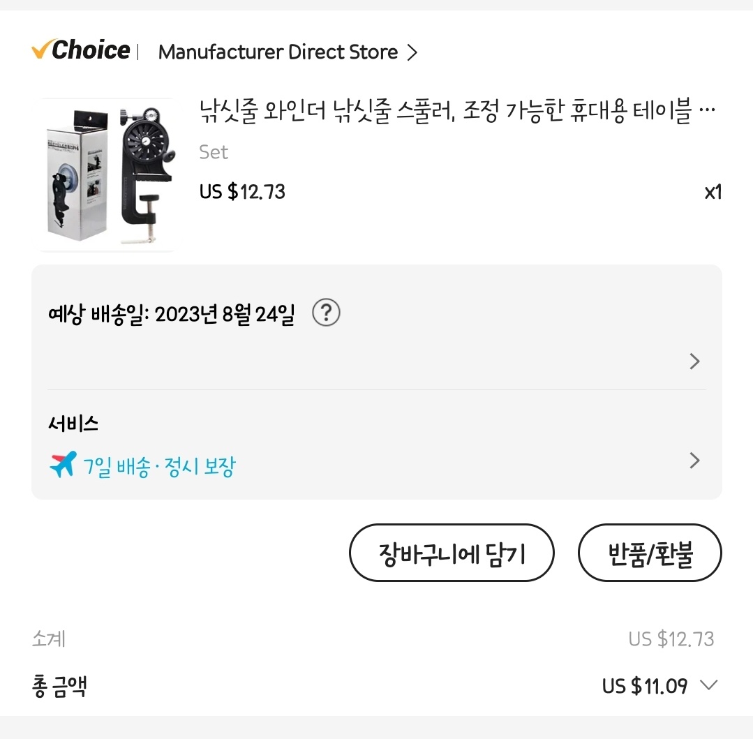 11.09달러에 구매했고 7일배송이었는데