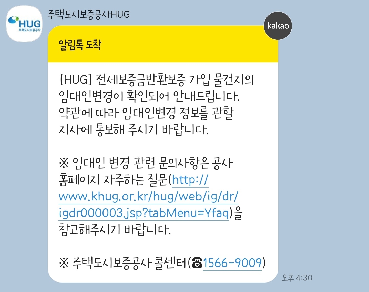 주택도시보증공사에선 친절하게 카톡을 보내주셨고